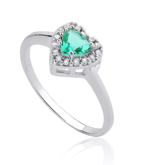ANEL DE PRATA CORAÇÃO TURMALINA CRAVEJADO